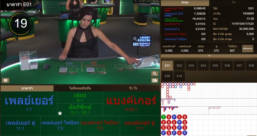 ตารางการเดิมพันเกมไพ่บาคาร่า168