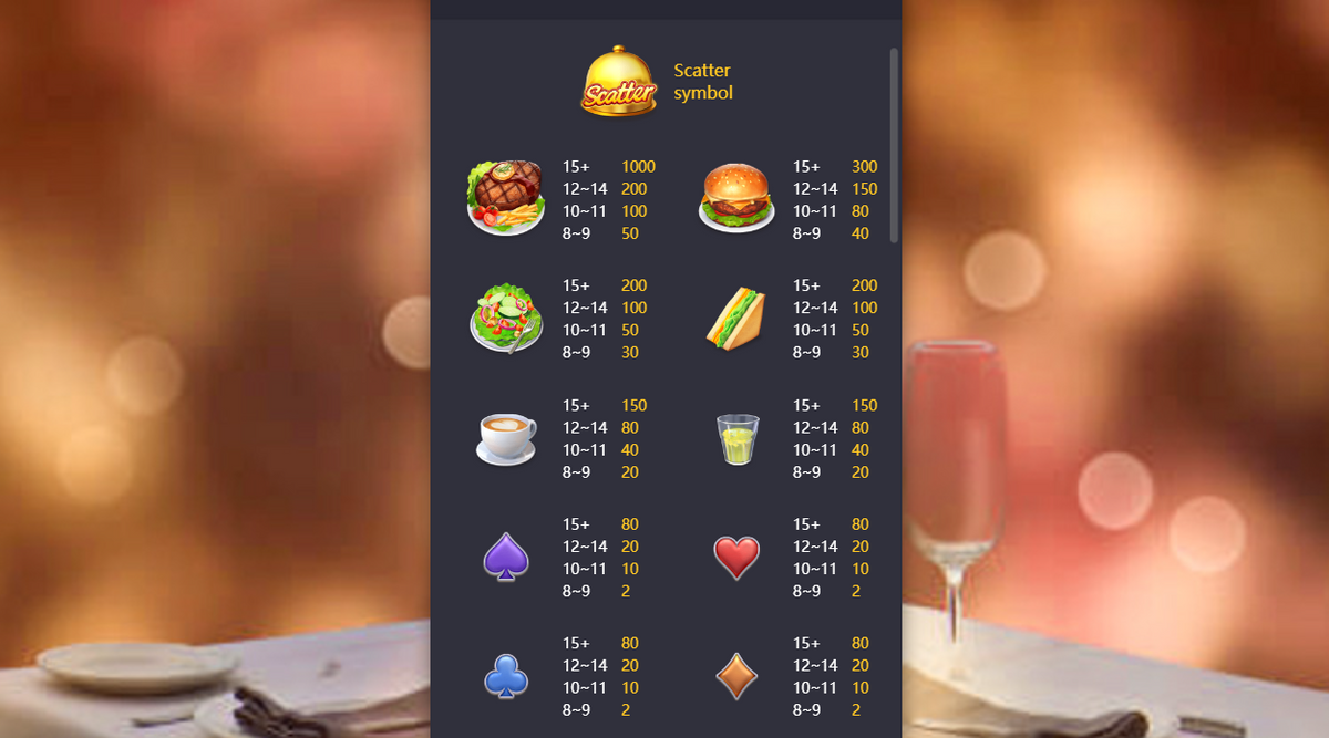 ตารางอัตราการจ่ายของ เกม Diner Delights
