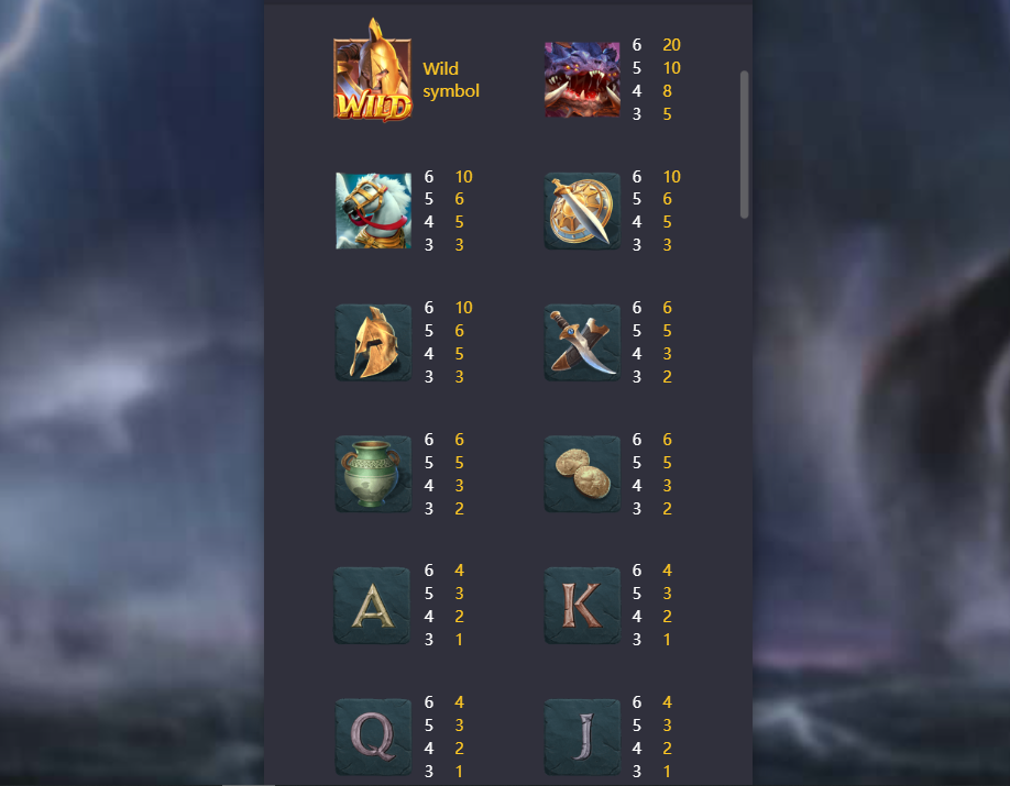 สัญลักษณ์ภายในเกมส์จะมีทั้งหมด 13 สัญลักษณ์ ต้องมีสัญลักษณ์เหมือนกัน 3 ตัว การหมุน 1 ครั้งสามารถชนะได้มากกว่า 1 ไลน์เดิมพัน สัญลักษณ์แต่ละสัญลักษณ์ มีอัตราการจ่ายเงินรางวัลที่แตกต่างกัน ขึ้นอยู่กับการวางเดิมพัน โดยมีอัตราการจ่ายเงินดังภาพ
