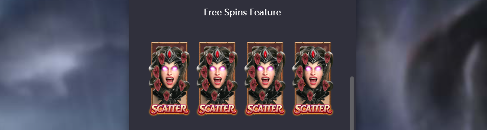 สัญลักษณ์ Scatter หากปรากฏ 4 ตัว จะทำให้เข้าสู่ฟีเจอร์ หมุนฟรีเริ่มต้น 10 ครั้ง สัญลักษณ์ Scatter เพิ่มเติมแต่ละตัวนั้นจะเพิ่มการหมุนฟรีอีก 2 รอบ