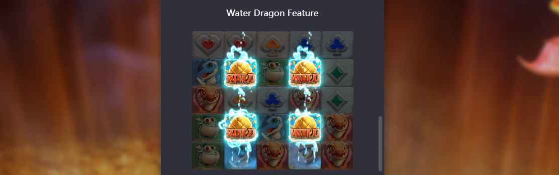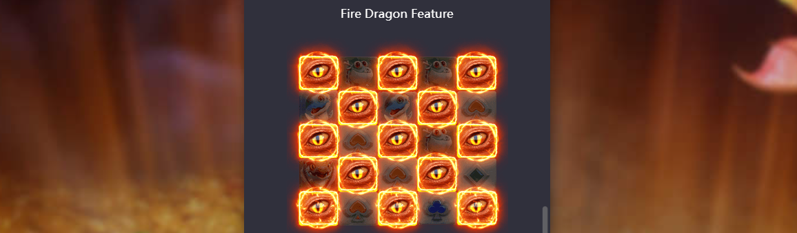 - ฟีเจอร์โบนัสมังกรตาไฟ สัญลักษณ์ที่ทำให้ชนะ ได้ 50 ตัว หรือมากกว่านั้น