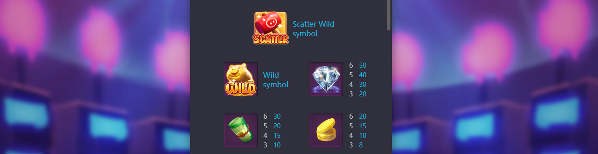 Wild Symbol สัญลักษณ์ Wild เป็นรูป หมูทอง เป็นตัวแทนสัญลักษณ์อื่น ๆ ภายในเกมในการชนะรางวัลได้ทันที (ยกเว้น Scatter)