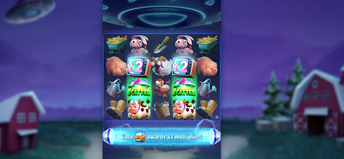 เกมสล็อตออนไลน์ Farm Invaders จากค่ายยอดนิยม PG SLOT มาในธีมฟาร์มวัวสุดพิศวง เกมสล็อตแตกง่าย PG SLOT เปิดให้ทุกคนได้ลิ้มลองความสนุกลุ้นมันส์กันได้แล้วที่ G2GIVE จาก G2GBET พร้อมกับความตื่นเต้นโดยที่ภายในเกมสล็อตที่มีคุณสมบัติพิเศษที่น่าสนใจอย่างรูปแบบ Multiplier Feature ที่เป็นสัญลักษณ์พร้อมตัวคูณเงินรางวัล และ Freespins ที่จะได้รับรอบหมุนฟรีพร้อมคุณสมบัติพิเศษอื่น ๆ และมีค่า RTP อยู่ที่ 96.68% พร้อมจ่ายเงินรางวัลสูงสุดถึง 20,000x เท่าของยอดเดิมพัน เข้าร่วมกับเรา G2GIVE สมัครฟรีไม่เสียค่าใช้จ่ายใดๆทั้งสิ้น พร้อมสิทธิพิเศษมากมายจาก G2GIVE