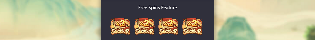 - Scatter Symbol สัญลักษณ์ Scatter เป็นรูป คัมภีร์ เมื่อรวบรวมครบ 4 ตัวที่อยู่ในตำแหน่งใดๆ ก็ตามจะเริ่ม ฟีเจอร์การหมุนฟรี 8 รอบ สัญลักษณ์ Scatter เพิ่มเติมแต่ละตัว นั้นจะเริ่มการหมุนฟรีเพิ่มอีก 2 รอบ ในตอนเริ่มฟืเจอร์การหมุนฟรี ตัวคูณเงินรางวัลจะเท่ากับตัวคูณ เงินรางวัลจากการหมุนที่เริ่มฟืเจอร์การหมุนฟรี