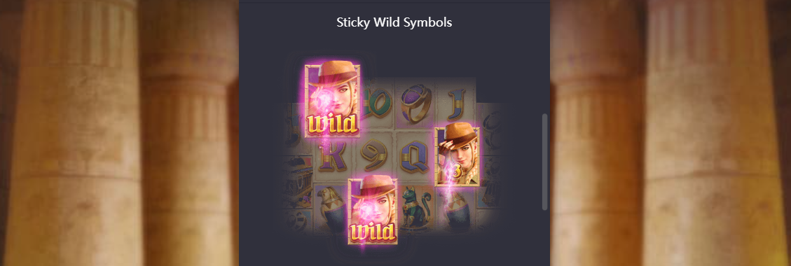 - Wild Symbol สัญลักษณ์พิเศษ Wild เป็นรูป Raider Jane ซึ่งสามารถแทนที่สัญลักษณ์ทุกตัวในเกมได้ เพื่อรวบสัญลักษณ์ชนะรางวัล ยกเว้น ( Scatter )เมื่อ Wild ชนะแล้วสัญลักษณ์จะไม่หายไปเลย แต่มีเลขตั้งแต่ 1, 2 และ 3 กำหนดคือจำนวนครั้งที่สัญลักษณ์ Wild สามารถอยู่เพื่อรวบสัญลักษณ์ได้