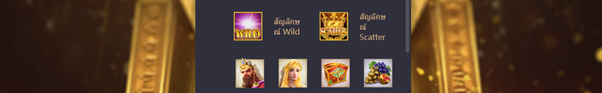 Scatter Symbol สัญลักษณ์ Scatter เป็นรูป มงกุฏทองคำ เป็นสัญลักษณ์เปิดใช้งานฟีเจอร์พิเศษของเกม สัญลักษณ์เปิดใช้งานฟรีสปินฟีเจอร์ เมื่อรวบรวมสัญลักษณ์ Scatter ได้ตั้งแต่ 4 สัญลักษณ์ขึ้นไป พร้อมรับรอบหมุนฟรีมากถึง 8 รอบหมุน